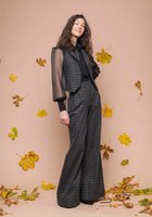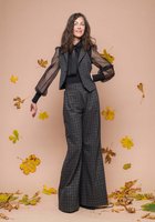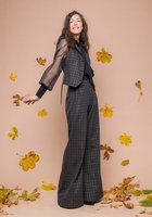 Das dreiteilige Set Vivienne kombiniert eine weit fallende Palazzo-Hose, eine modern geschnittene Weste und den edlen Body Odessa.